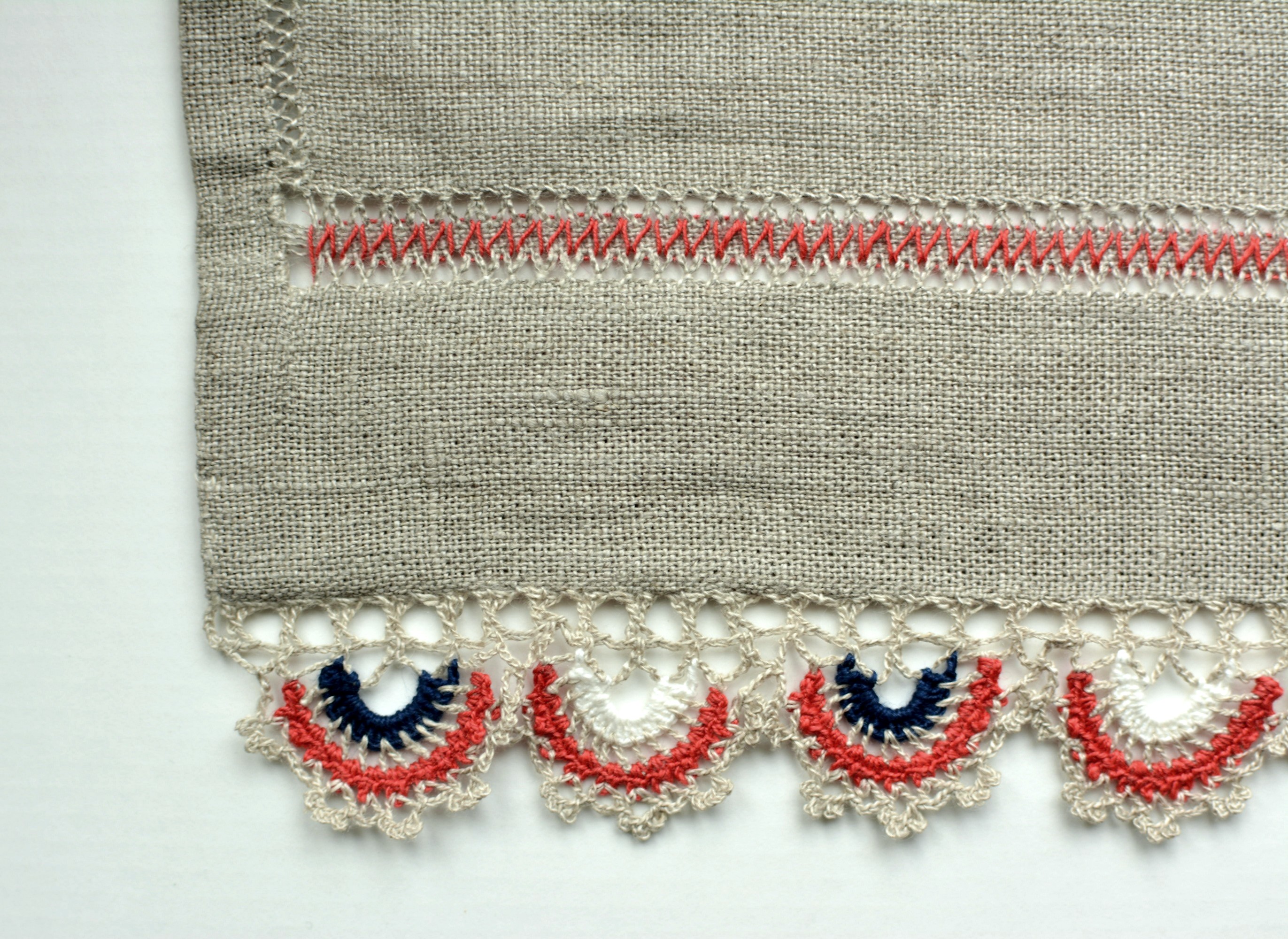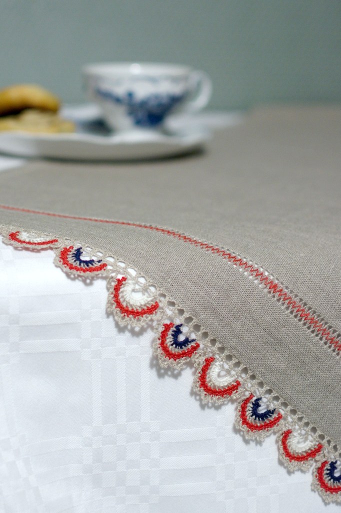 Kangas ja pits 100% linane, heegeldamiseks kasutasin 0,65 heegelnõela.