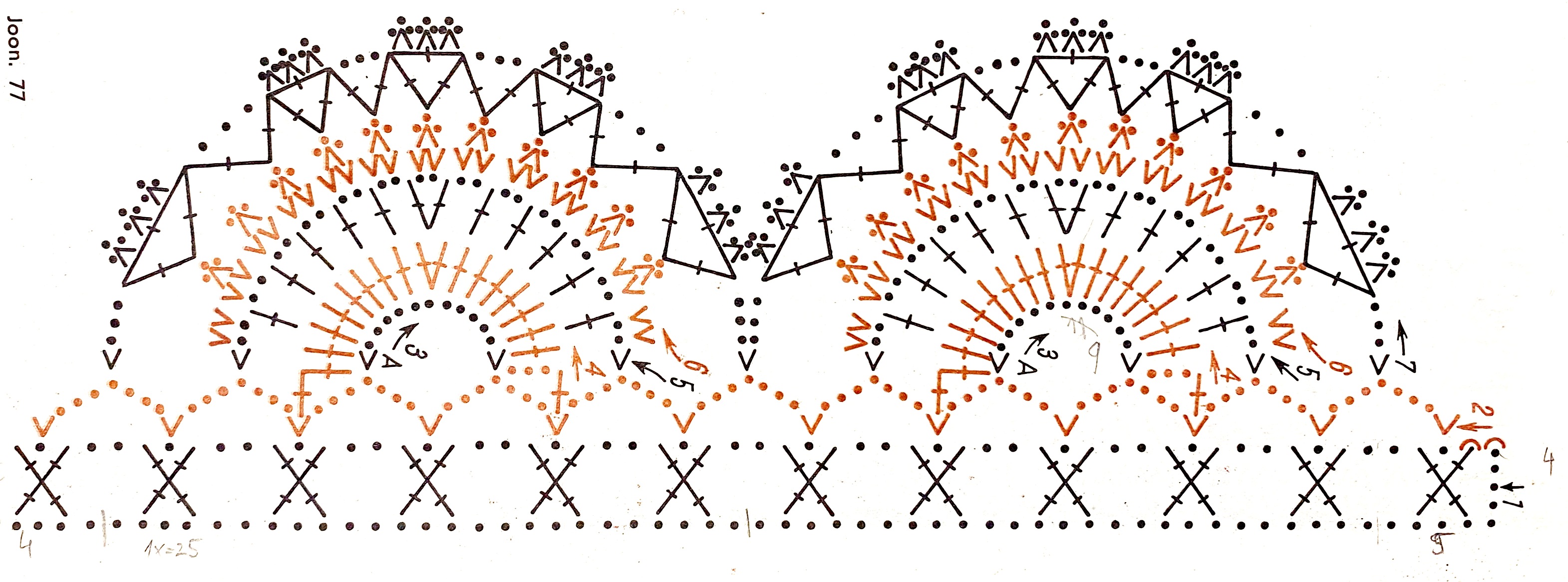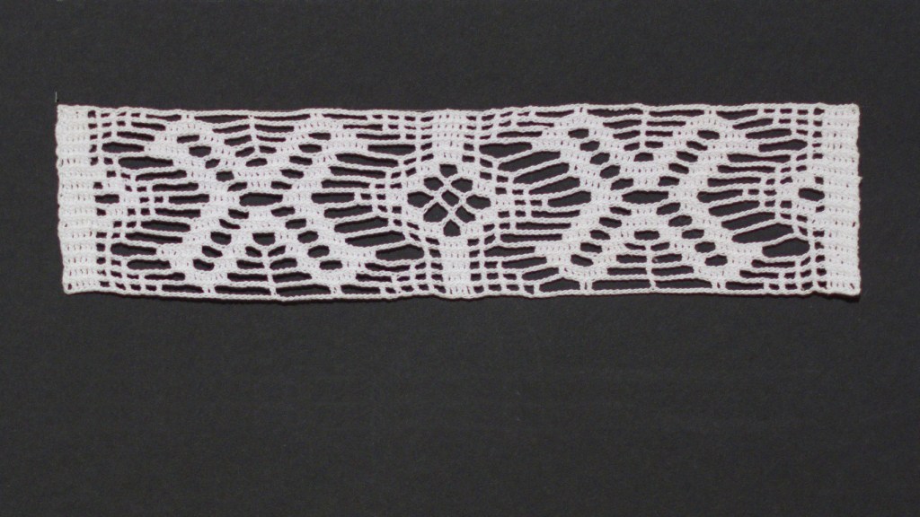 Pitsi muster on Erna Aljasmetsa raamatust „Heegeldatud äärepitsid“, pits 77 Muhu naise põllealane pits.