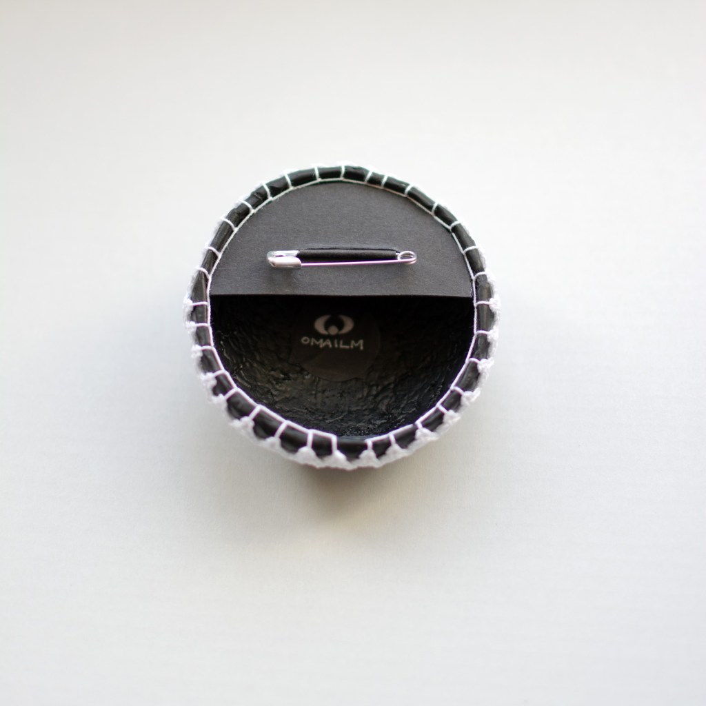 Ühendasin hargil tehtud riba ringiks ja heegeldasin serva. Motiiv on kinnitatud sämppistega.