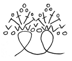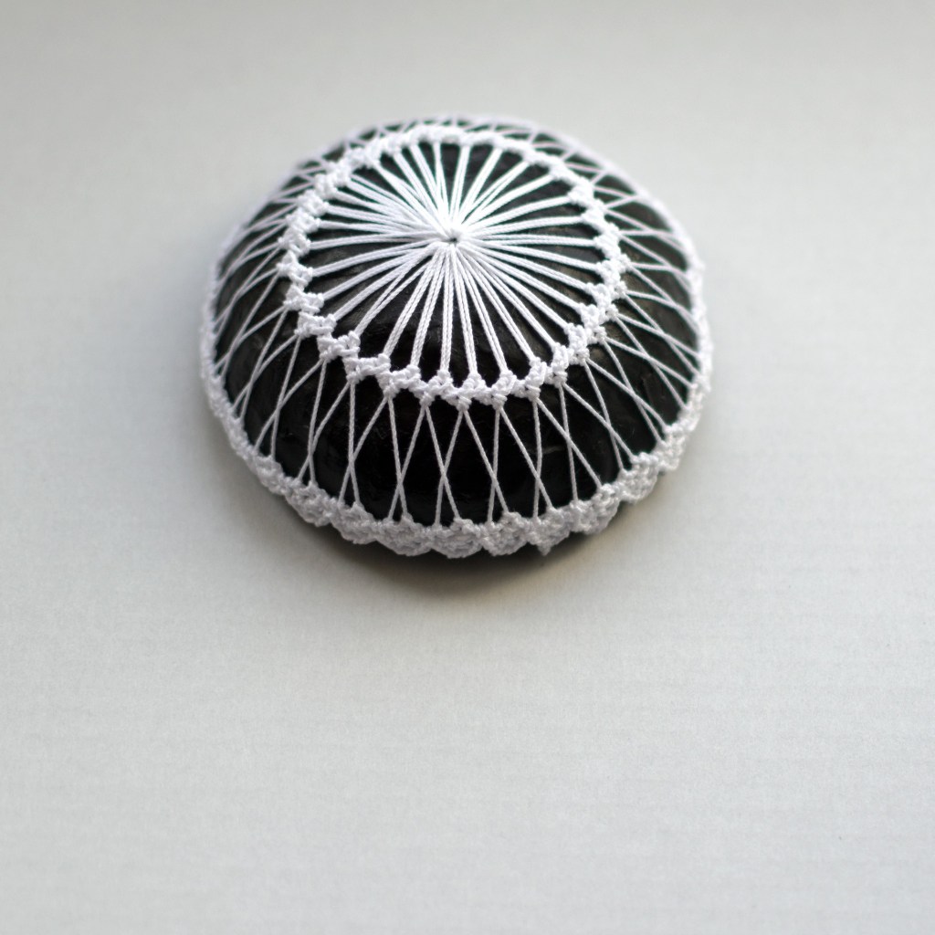 Papjeemašee tehnikas põhjal puuvillase niidiga hargipitsi motiiv.