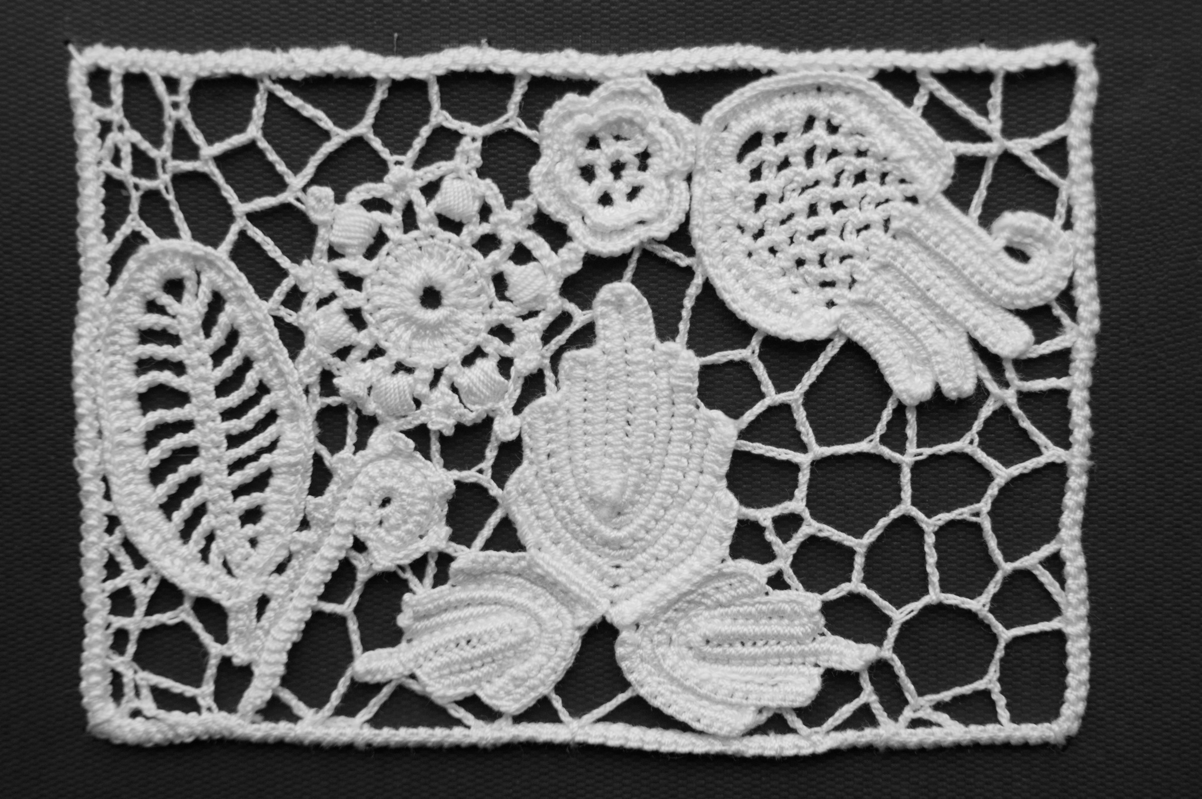 Motiivid on heegeldatud nr 50 ja taustavõrgud nr 70 puuvillasest niidist, heegelnõel 0,6.
