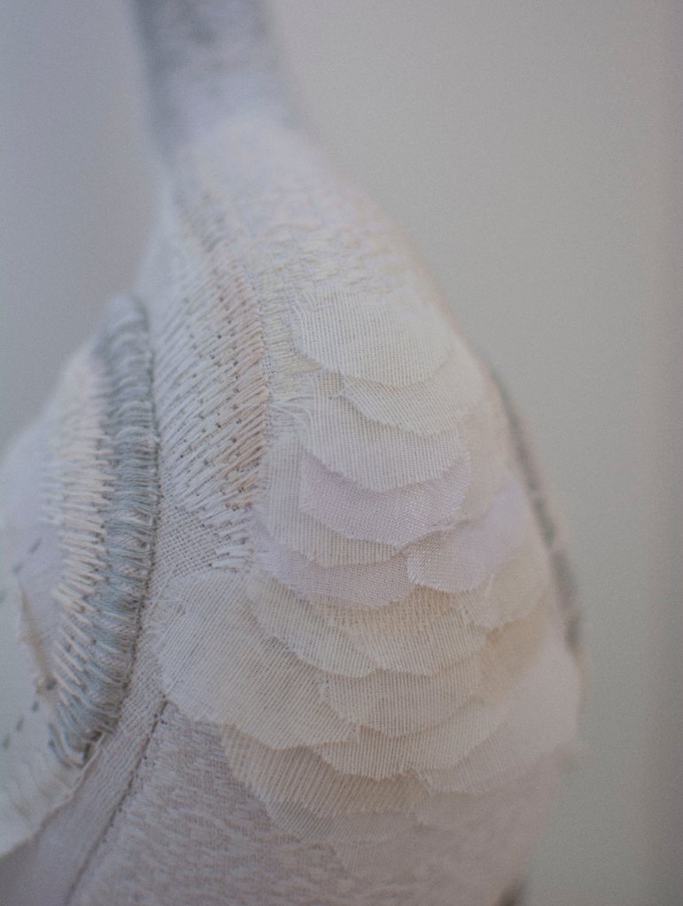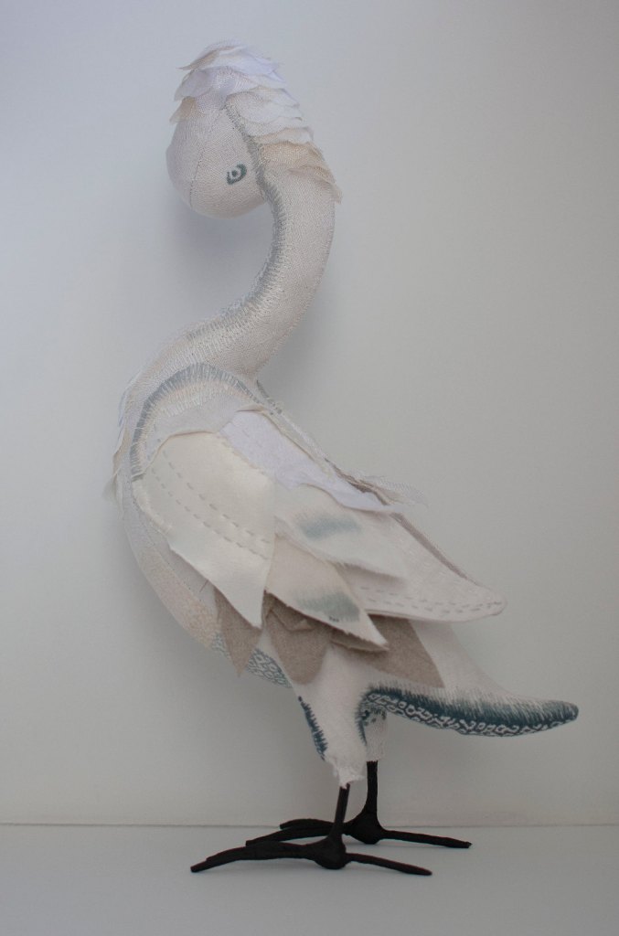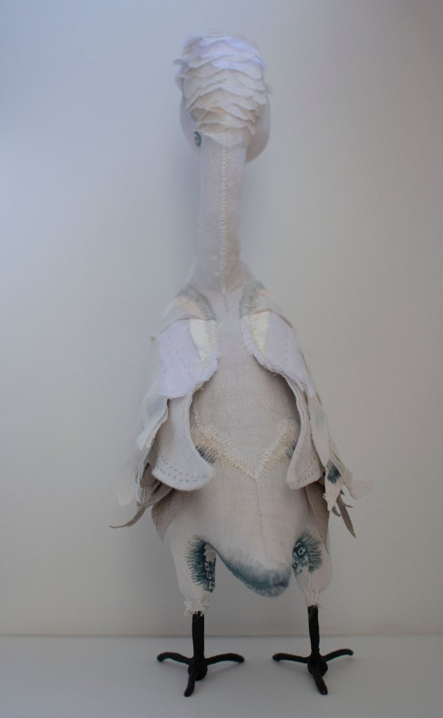 Lõputööna valmistatud tekstiilist pehme skulptuur, kaunistatud vabakäelise tikandiga.